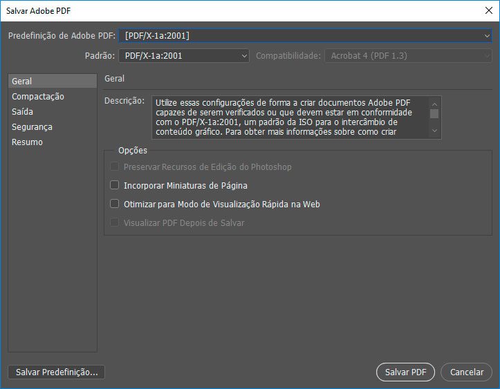 Como gerar um arquivo PDF/X-1A no Photoshop